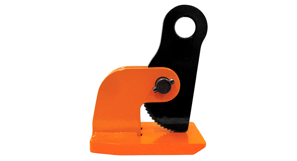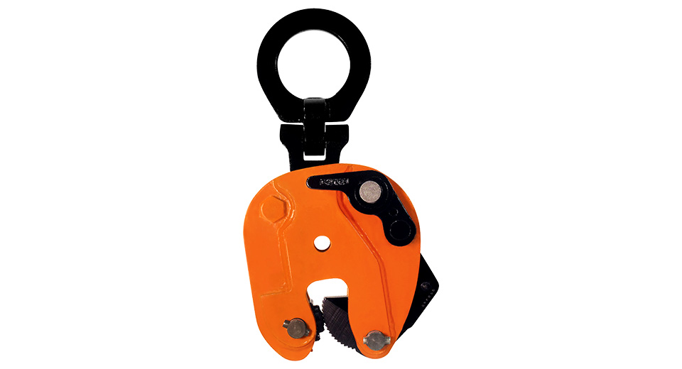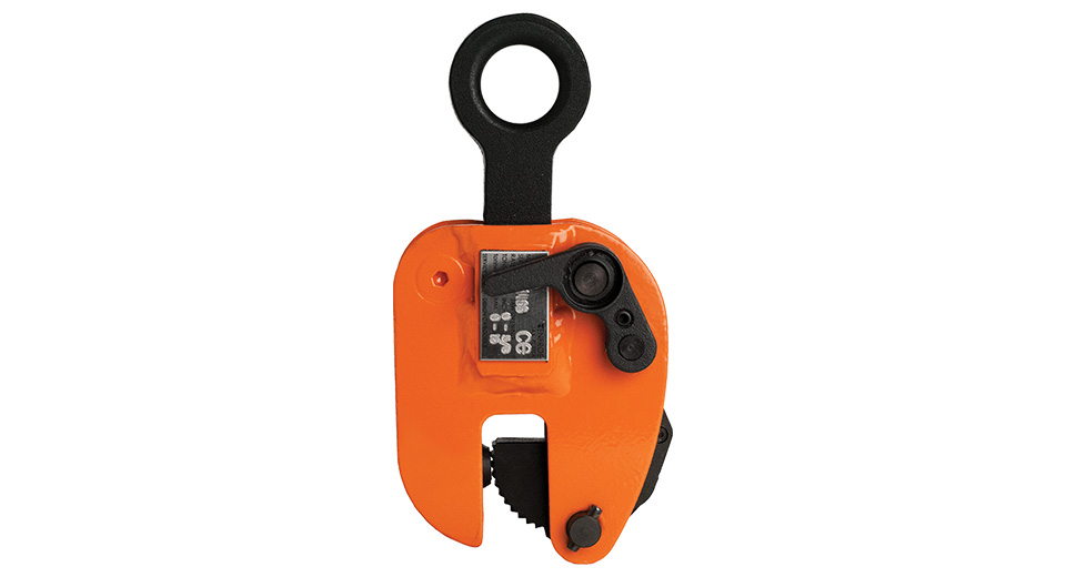 Suitable up to 90° lateral and transverse WLL, with universal carrying ring. Each clamp is tested for 2 x WLL, provided with a serial number, and is delivered with a certificate and CE-marking. Safety factor 3:1.