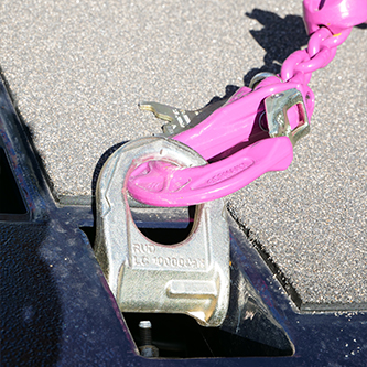 Anschlagpunkte kommen aus der Hebetechnik und sind deshalb nicht mit der zulässigen Zugkraft LC gekennzeichnet, sondern mit ihrer Tragfähigkeit. Zudem unterliegen Zurrpunkte und Anschlagpunkte unterschiedlichen Sicherheitsfaktoren. Daher werden Sie mit hochfesten und geprüften RUD Zurrpunkten den Anforderungen der Praxis leichter gerecht.