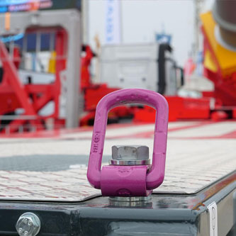 Beim Transport schwerer Maschinen oder Bauteile können enorme Kräfte an der Ladung zerren. Die erforderlichen Rückhaltekräfte, um die Ladung auf der Ladefläche zu halten, werden durch eine Direktzurrung zuverlässig übertragen. Grundvoraussetzung dafür ist jedoch das Vorhandensein von Zurrpunkten an der Ladung und auf der Ladefläche. Richtige Ladungssicherung beginnt also bereits in der Konstruktionsphase. Schweißbare RUD Zurrpunkte sind geschmiedete, aus hochwertigem Legierungsstahl bestehende, bewegliche Ringösen,